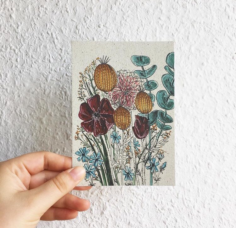 Gedruckt werden Prints, Postkarten und Co. meist im Raum Stuttgart von einer regionalen, nachhaltigen Druckerei. Das verwendete Graspapier wird in Deutschland produziert.