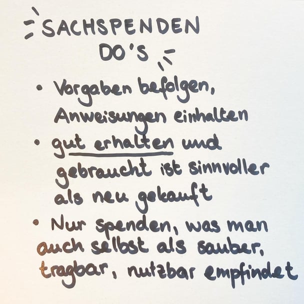 Natürlich versteht sich von selbst, dass weder Müll noch kaputte oder dreckige Gegenstände in eine Spende gehören.